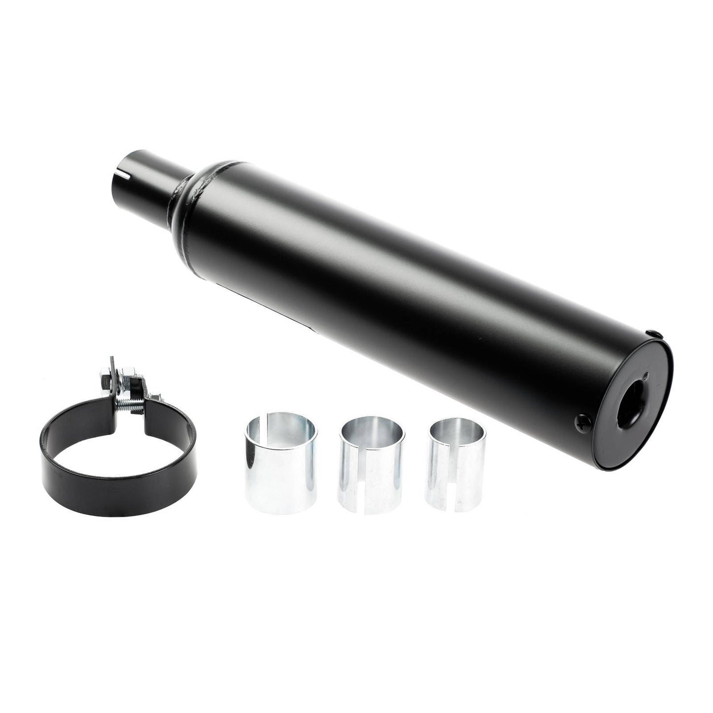 The Whites Universal 2-Stroke Muffler will reduce the noise of your bike, limiting noise complaints and noise pollution. Constructed from steel for strength and durability with a black powder coat finish to prevent corrosion while adding a sleek look. The muffler is designed with a removable end cap for quick and easy muffler repacking along with an included mount for a quick and easy installation.